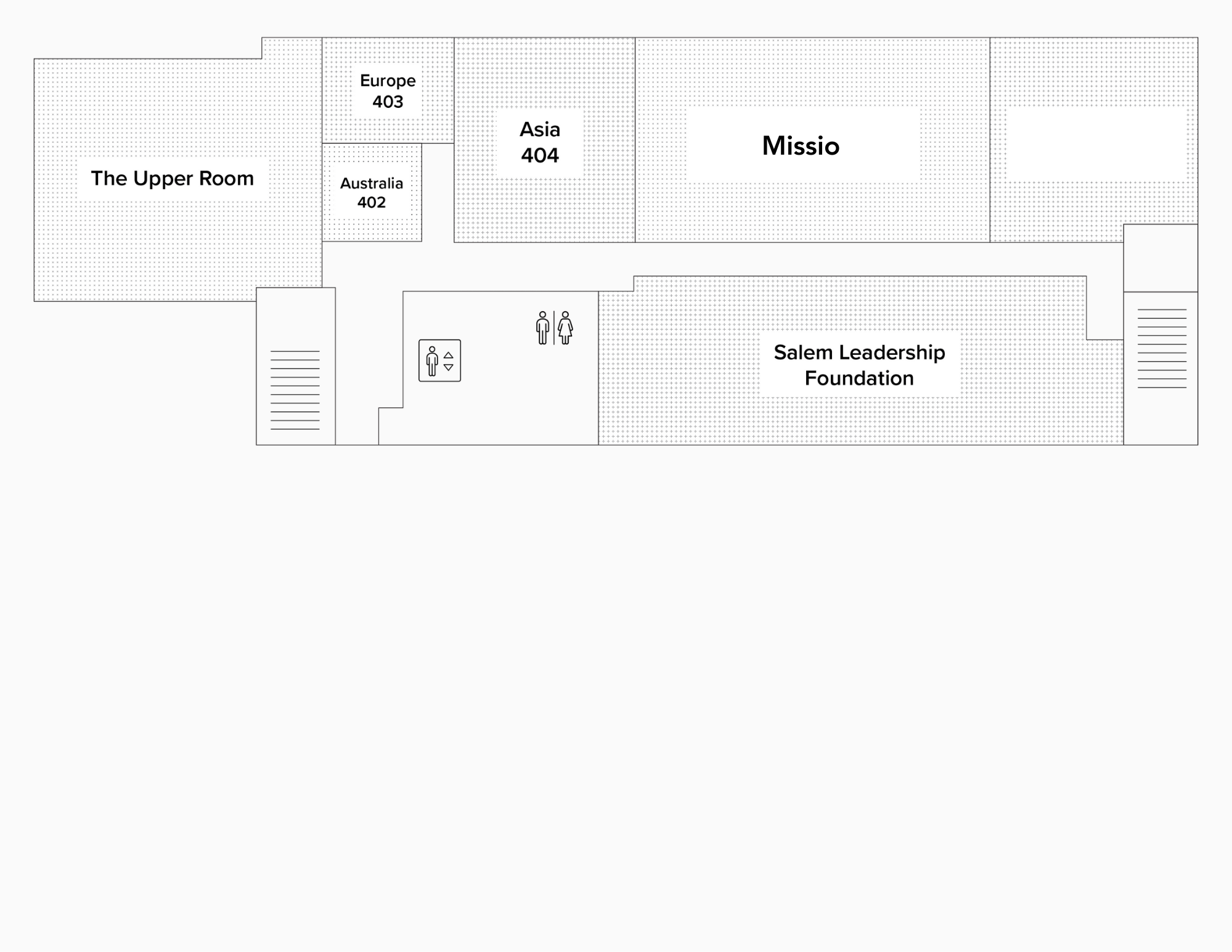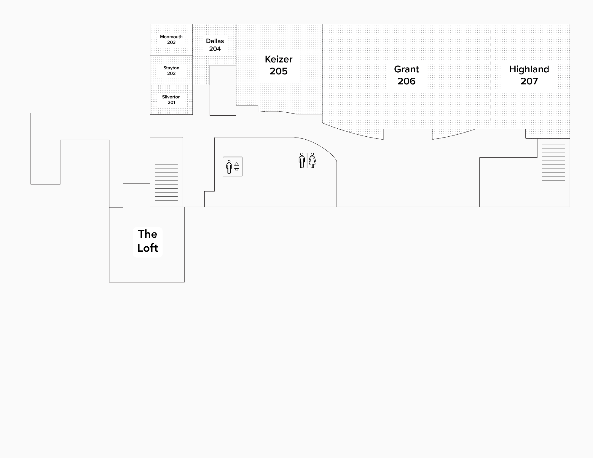 There are 17 meeting rooms that vary in size from eight-person conference rooms to a 250-person ballroom.